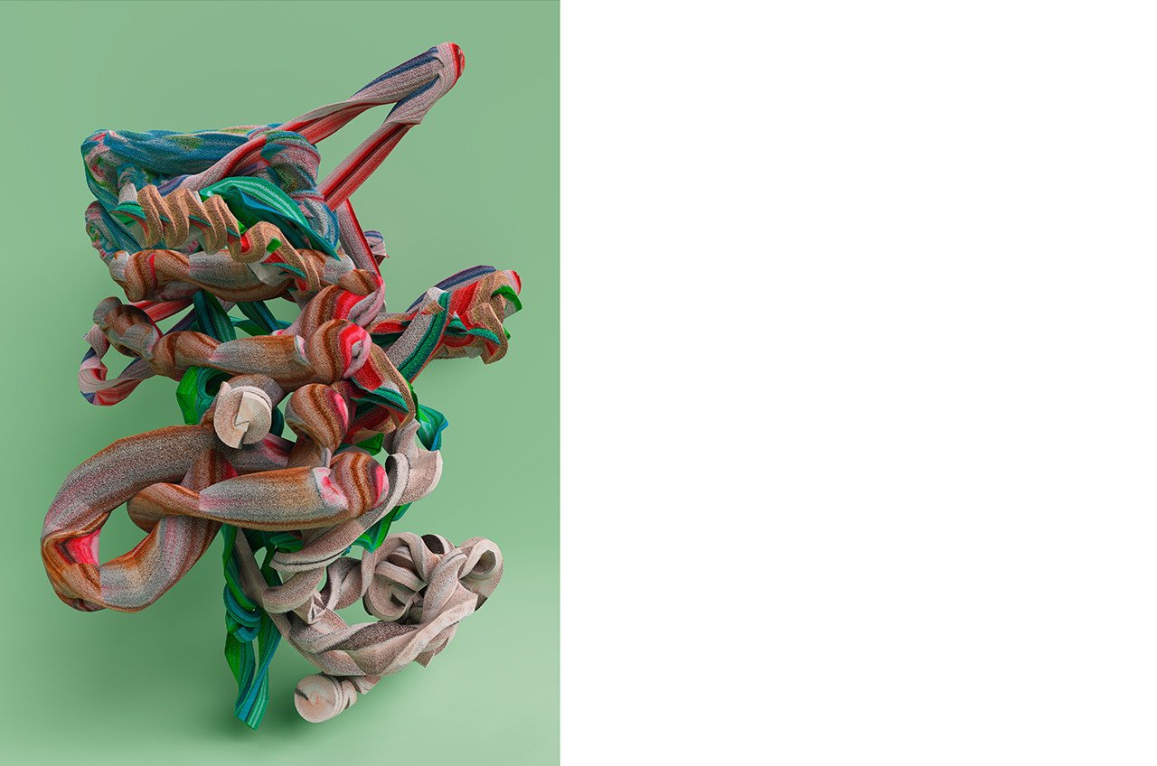 Onkel-Stuhl. 2008. 8 Stühle: jeweils Textilbänder über Stahlgestell Jeweils 84 × 51 × 58 cm bzw. 84 × 61 × 58 cm.
