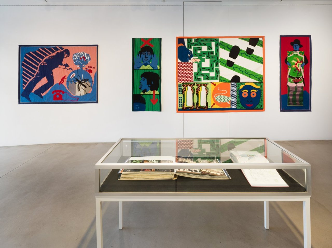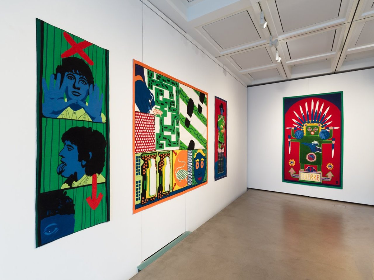 The presentation is complemented by a selection of textile works and tapestries that Ottinger created in the 2010s. These works take up motifs and visual languages from earlier painterly works and translate them into a new, material form. Threads, fabrics and structures become here vessels of memory and transformation – textures in both the literal and figurative sense.