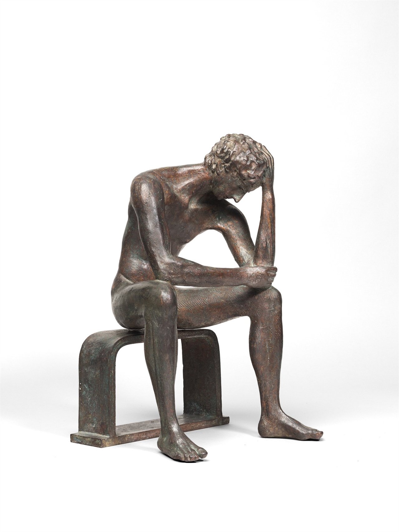 „Philosoph“. 1981. 2-teilig: Bronze mit dunkelbrauner Patina. 34 × 20 × 20 cm. EUR 3.000–4.000
