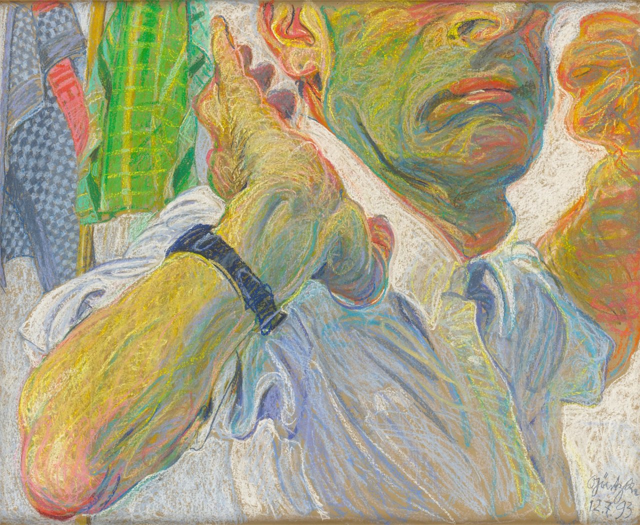 „Selbst mit verzerrtem Mund“. 1993. Pastellkreide auf braunem Packpapier. 99 × 119 cm. EUR 3.000–4.000