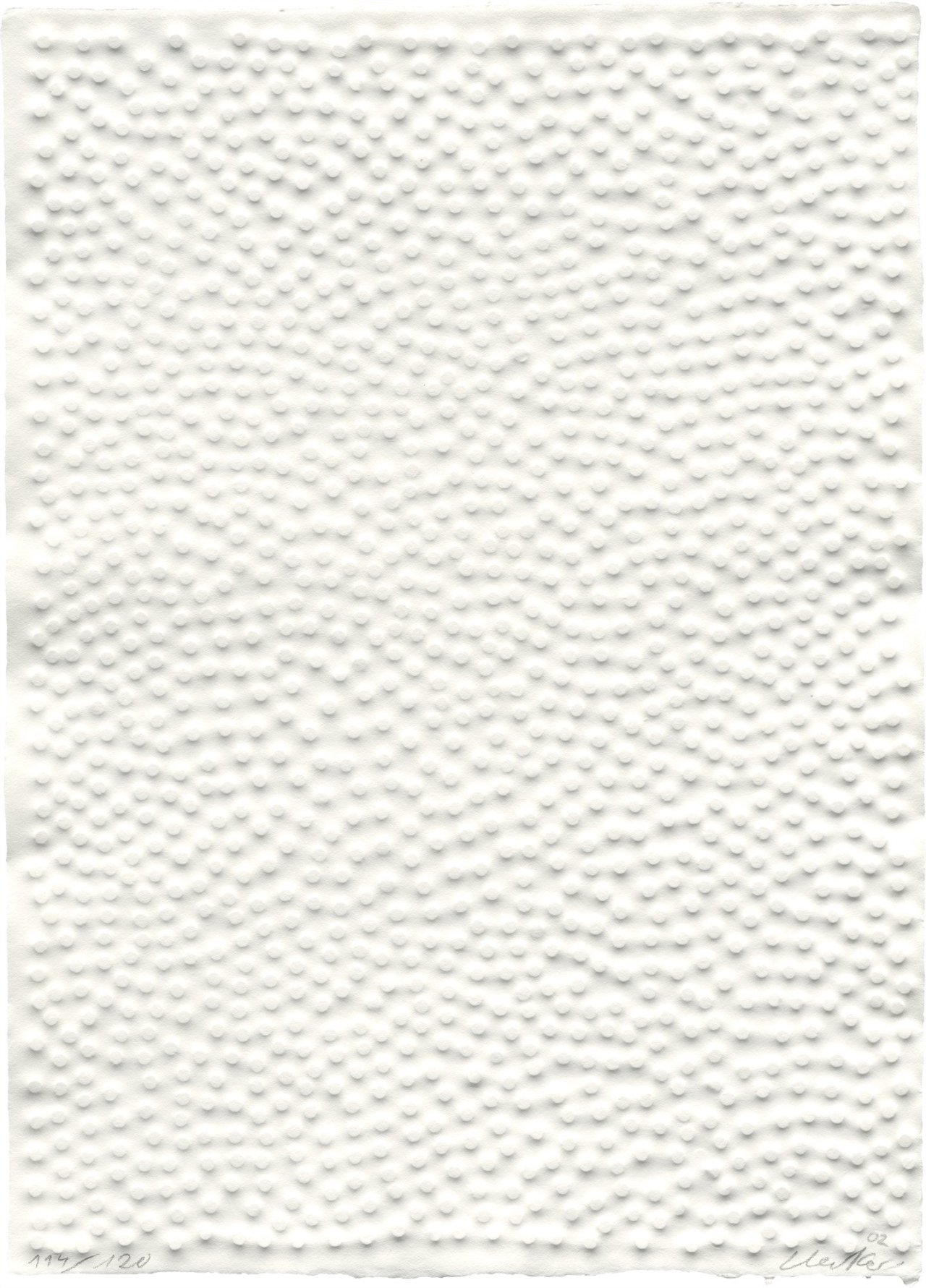 Aus: „Graphein“. 2002. Prägedruck auf Bütten. 69,8 × 50,2 cm. EUR 4.000–6.000