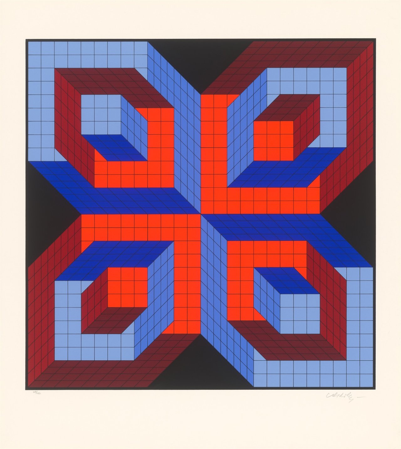 „Idom Stri“. 1986. Farbserigrafie auf Arches-Velin. 65,9 × 65,9 cm (85 × 76 cm). EUR 600–800