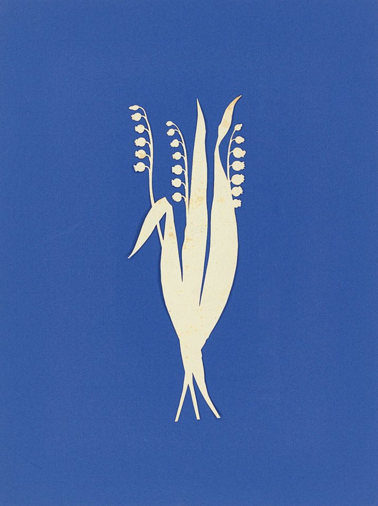 Philipp Otto Runge. „Maiglöckchen“. Weißer, lose aufbewahrter Scherenschnitt. 25,5 × 9,3 cm.